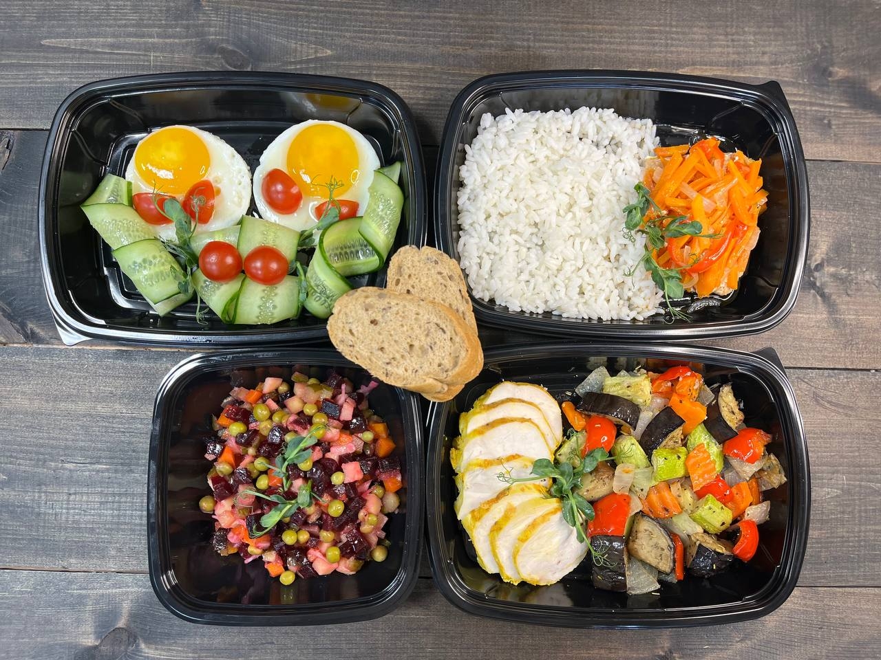 Данное меню готовится по предварительному заказу (минимум за 1 день до необходимой даты доставки) ЗАВТРАК - Глазунья 95 г - помидор черри 20 г - огурец свежий 40 г - микрозелень ОБЕД - Горбуша под маринадом 80/70 г - Рис отварной 150 г - багет мультизлаковый 20 г ПЕРЕКУС - Салат "Винегрет" 180 г - микрозелень УЖИН - Пряное филе запеченное 100 г - Соте из овощей 150 г - микрозелень